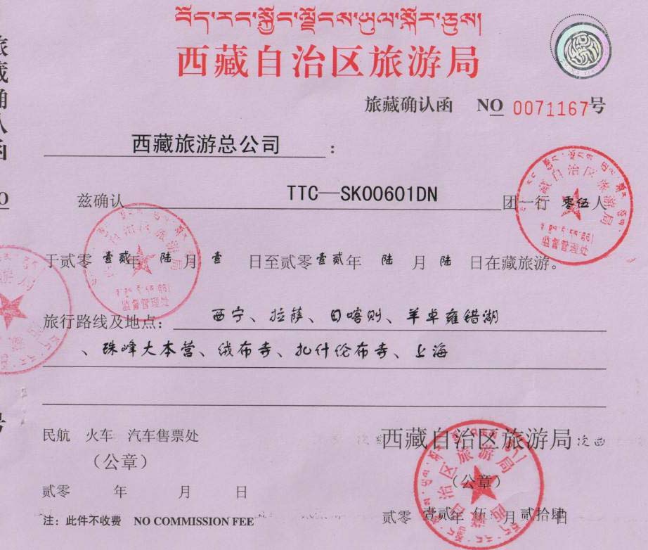 1, Los extranjeros que viaján al Tíbet deben solicitar una permiso de entrada para entrar en el tíbet, conocida como Carta de invitación para entrar tíbet. Es una licencia de viajar a Tíbet que solicitada por la Agencia de viajes China a la Oficina de Turismo del Tíbet. Todos los extranjeros o chinos de ultramar necesitan tener este documento cuando viajar al Tíbet.